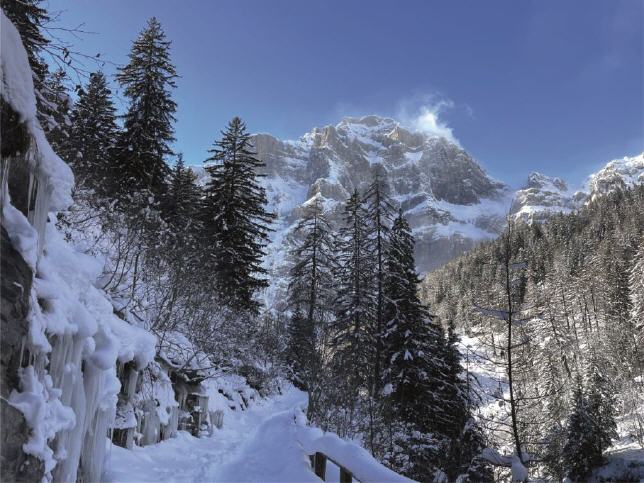 Übrigens, es ist auch im Winter möglich einen Blick auf den Steg in der Dalaschucht zu werfen. Beachten sie die Wegweiser und die Lawinensituation
